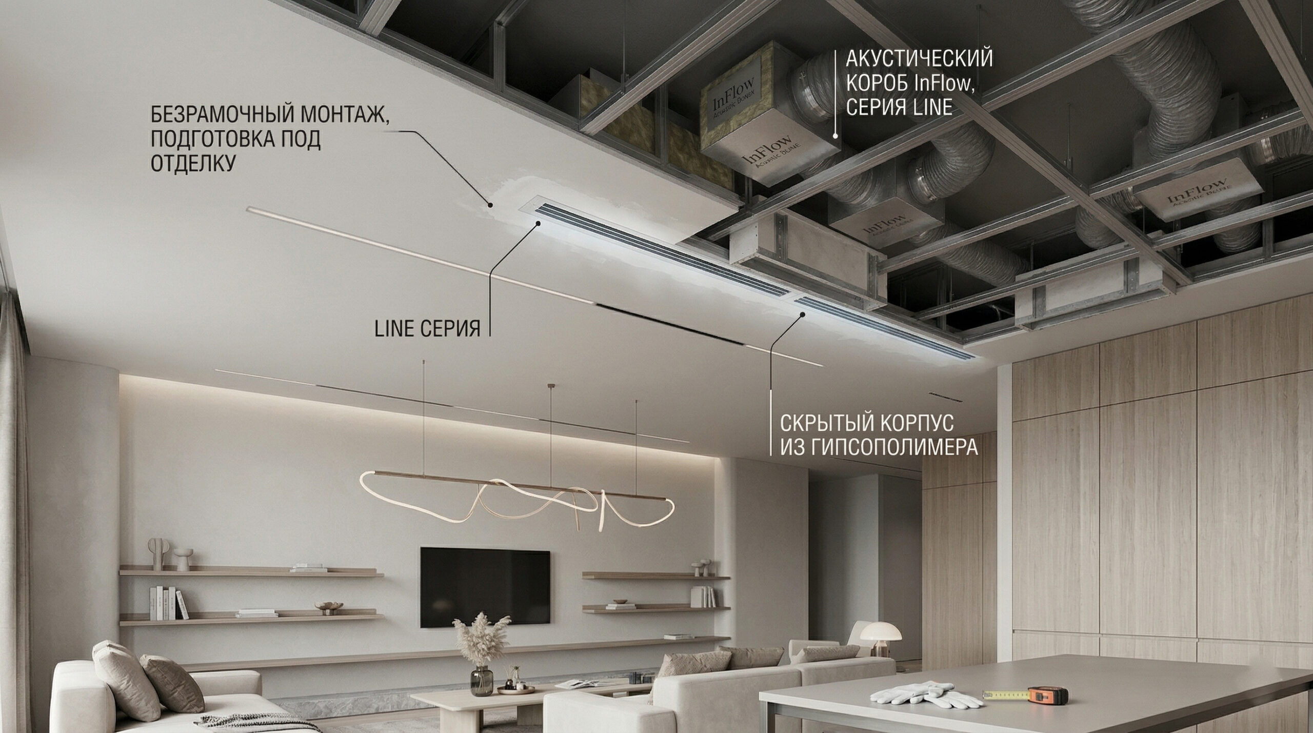 ClimatPROF Kazakhstan is an expert in the design and installation of ventilation systems and an official supplier of InFlow designer solutions. We offer not only equipment supply but also professional turnkey installation with a quality guarantee at every stage—from selecting the right series (Line 1, 2, or 3) to the final finish.